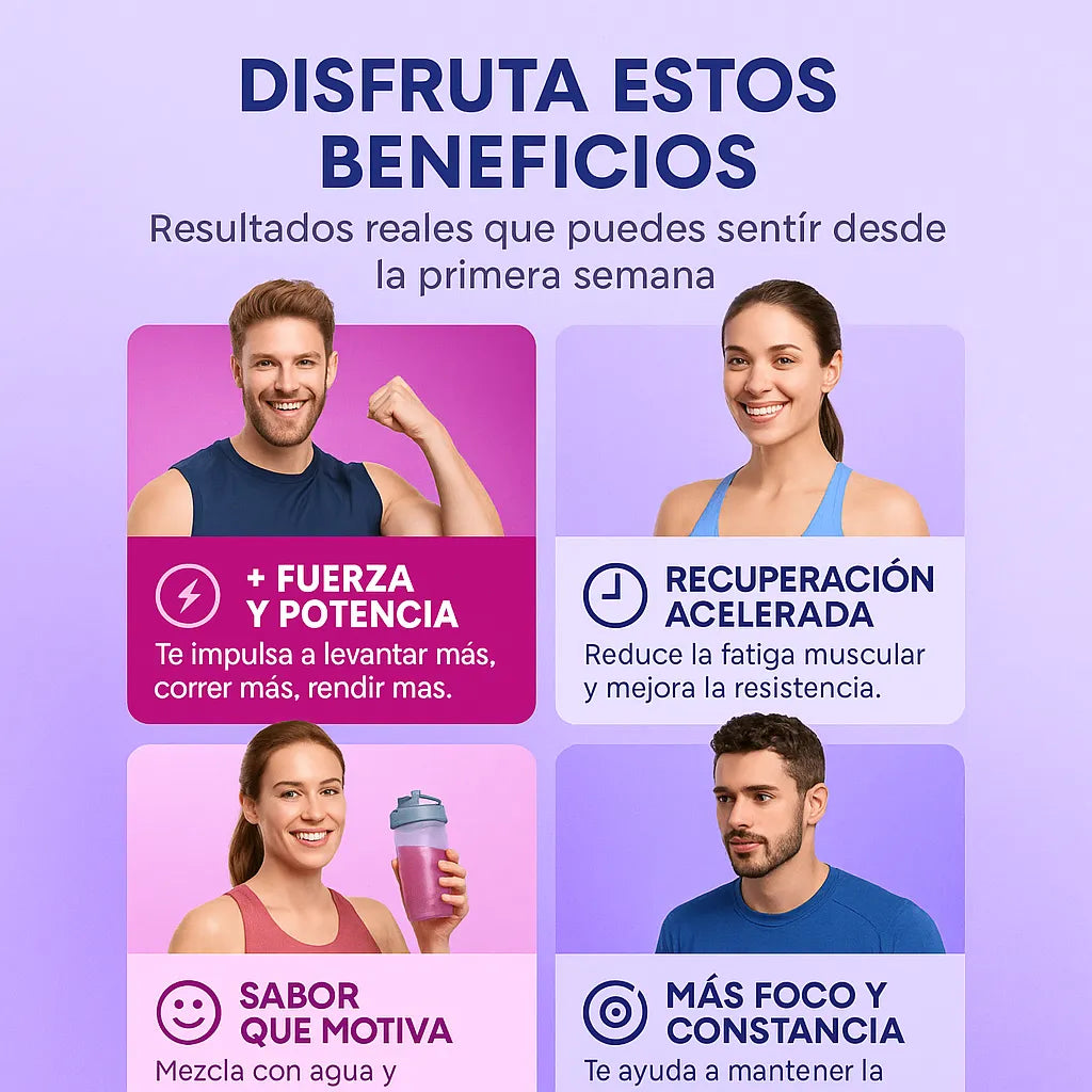 Ayuda a mejorar la fuerza muscular, reducir la fatiga y aumentar la energía durante tus entrenamientos, con resultados visibles desde los primeros 7 días.