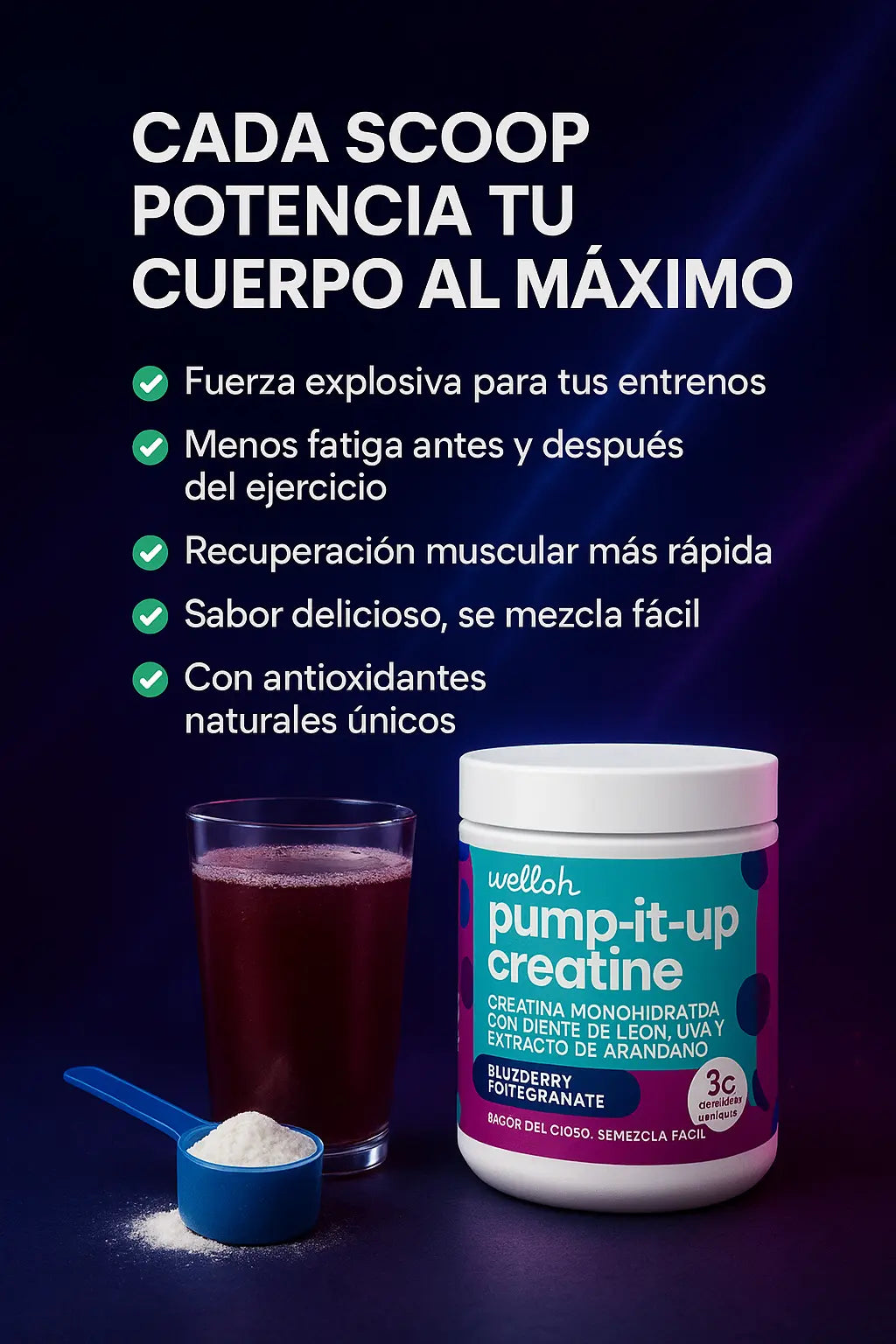 ¿Qué beneficios obtengo al tomar Pump-it-up Creatine?
